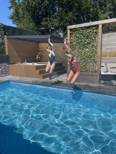 Onze Whirlpool bevat verschillende massagejets, gepositioneerd in voorgevormde ergonomische ligbanken. "Zalig voor het lichaam, uitstekend voor de geest." (Volledig uitgerust volgens Vlarem2 wetgeving met buffertank.)