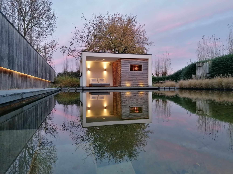 Het complex met regendouches, lounge-salon, infraroodhoek, voetbadjes, stoomcabine, Finse sauna, buitenjacuzzi, buitendouche en zwemvijver staat volledig privaat tot uw beschikking.