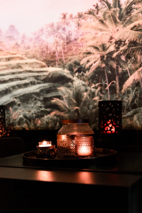 ’s Avonds kan je genieten van het schijnsel van de Oosterse lantaarns, wees erbij op het uur van de schemering wanneer een zacht blauw licht als een warme sluier over het zwembad neerdaalt.
