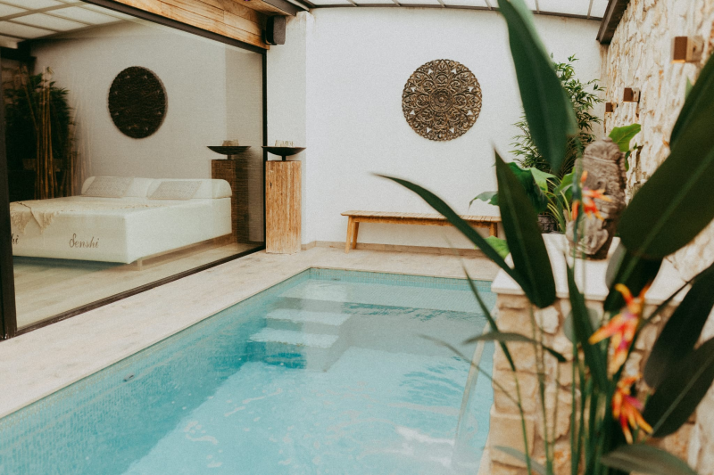 Even weg van alle stress en drukte, u kan er zalig genieten van de sauna ,stoombad , buitenzwembad en buiten jaccuzi, met als grote pluspunt dat wanneer het weer tegenzit , wij de volledige buitenruimte kunnen afsluiten tegen weer en wind, zodat u lekker droog en warm kan genieten van de buitenruimte!